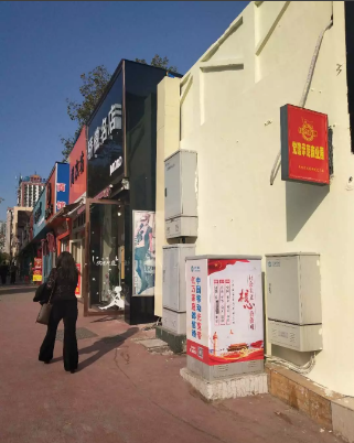 中天街臨街門面外墻面貼有小廣告,且墻面陳舊臟亂、多處脫落。對此物業(yè)公司組織人員清理了外墻牛皮廯,對墻面進行全方位粉刷,整體出新。粉刷后墻面干凈、無污跡、無殘損。