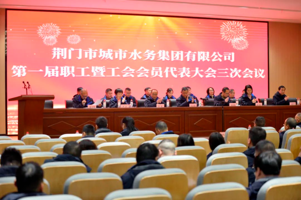 2024年1月3日下午,荊門市城市水務(wù)集團(tuán)有限公司(以下簡稱“集團(tuán)”)召開第一屆職工暨工會會員代表大會三次會議,74名正式代表和39名列席代表參會。會議由總經(jīng)濟(jì)師趙天貴主持。