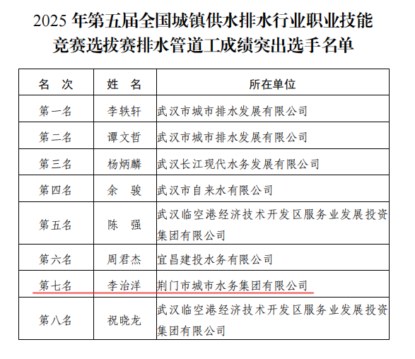 近日,荊門水務集團成功獲評第五屆全國城鎮(zhèn)供水排水行業(yè)職業(yè)技能競賽湖北省選拔賽道德風尚獎。集團參賽選手不負眾望,取得佳績。詠泉公司付傳艷、余怡康榮獲個人優(yōu)秀獎,排水公司李治洋獲得第七名。