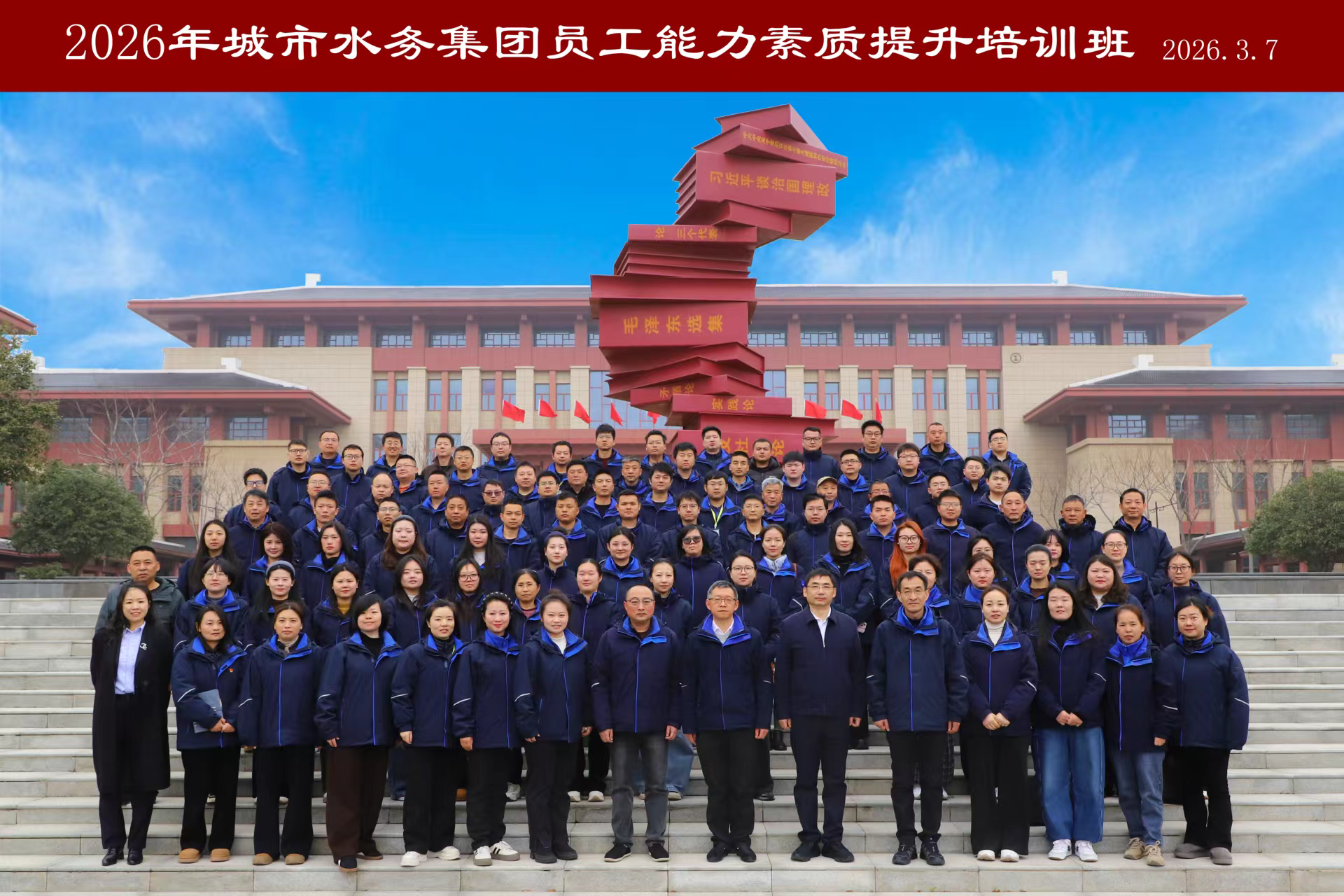 為深入貫徹省委《全省深化拓展“干部素質(zhì)提升年”實(shí)施方案》相關(guān)要求,進(jìn)一步加強(qiáng)人才隊(duì)伍建設(shè),3月7日,荊門市城市水務(wù)集團(tuán)有限公司(以下簡(jiǎn)稱“集團(tuán)”)員工素質(zhì)提升培訓(xùn)班(第五期)在中共荊門市委黨校正式開班。集團(tuán)業(yè)務(wù)骨干共100人分兩批參訓(xùn)。