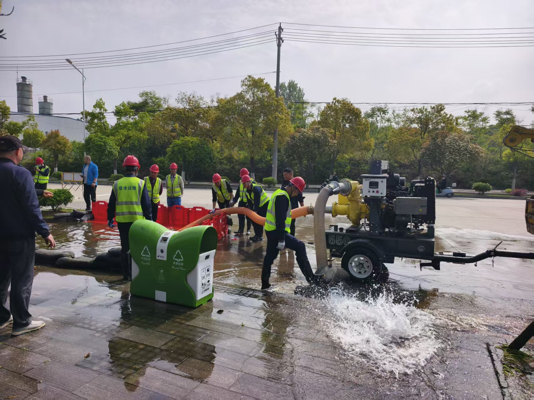 此次演練全面落實“市城管委-區(qū)城管局-市水務(wù)集團”三級聯(lián)動機制,實現(xiàn)統(tǒng)一調(diào)度、高效聯(lián)動。在鳳凰大道與鳳凰五路交匯處北側(cè),模擬強降雨天氣導(dǎo)致城區(qū)主干道低洼路段深度積水、交通阻斷的突發(fā)險情,30名專業(yè)搶險人員、10臺運維搶險車輛快速響應(yīng)、準時集結(jié),擋水屏障、防汛沙袋、大功率移動泵車等應(yīng)急物資悉數(shù)到位,各參演單位分工協(xié)作、規(guī)范作業(yè),依次完成現(xiàn)場警戒圍擋、管網(wǎng)疏通清淤、積水大流量強排、管線安全防護全流程實操,各環(huán)節(jié)銜接順暢、處置高效,僅用時20分鐘便徹底排清道路積水,恢復(fù)正常通行,圓滿完成既定任務(wù)。