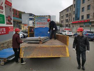 在接到支援圍檔、警示牌等物資的通知后,維修、安裝等部門黨員干部、工程技術(shù)人員義無反顧、踴躍報(bào)名參加,分為2路多個(gè)班組同時(shí)作業(yè),于2月11日10時(shí)分別運(yùn)送到煉廠路社區(qū)和東站社區(qū)各個(gè)封閉隔離點(diǎn),為打贏這場(chǎng)戰(zhàn)“疫”出一份力。