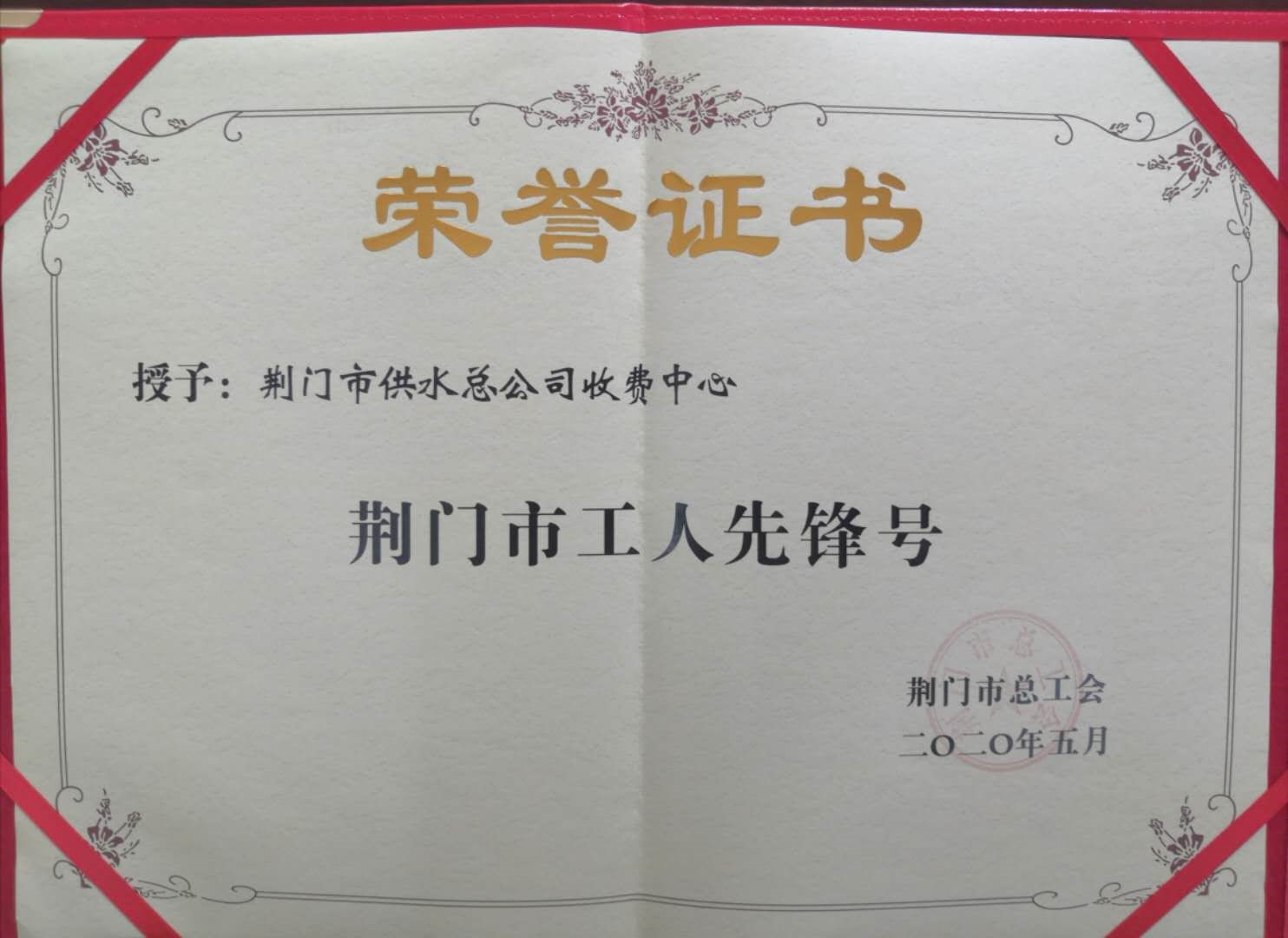 近日,荊門市總工會授予市供水總公司收費中心等32個集體“工人先鋒號”榮譽,以表彰他們在開展全市窗口行業(yè)優(yōu)質(zhì)服務(wù)活動和創(chuàng)建“全國文明城市”工作中取得的突出成績及起到的引領(lǐng)示范作用。