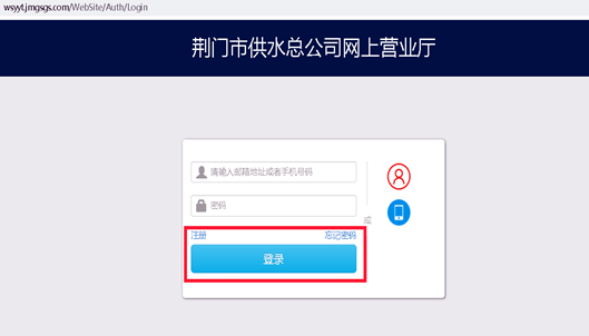 1.打開荊門市供水總公司網(wǎng)上營(yíng)業(yè)廳,注冊(cè)賬號(hào)(已有賬號(hào)可以直接登錄),登錄網(wǎng)上營(yíng)業(yè)廳。